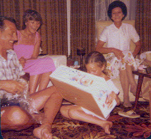 Christmas many years ago…Vic and her Gramps and Moekie